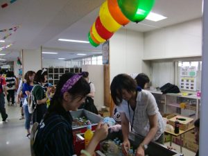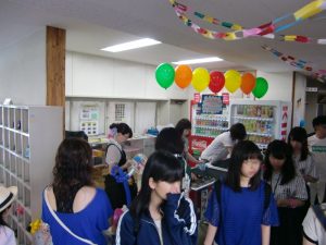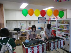 売店前にてジュース販売及びバルーンプレゼント